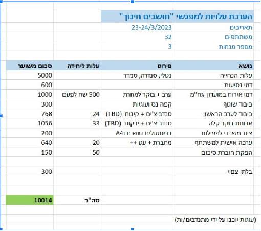 מצורף פירוט העלויות המוערכות ליומיים אלו.